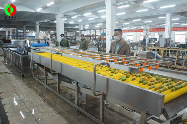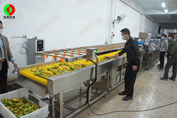廣西客戶(hù)現(xiàn)場(chǎng)考察芒果清洗生產(chǎn)線(xiàn)完工測(cè)試