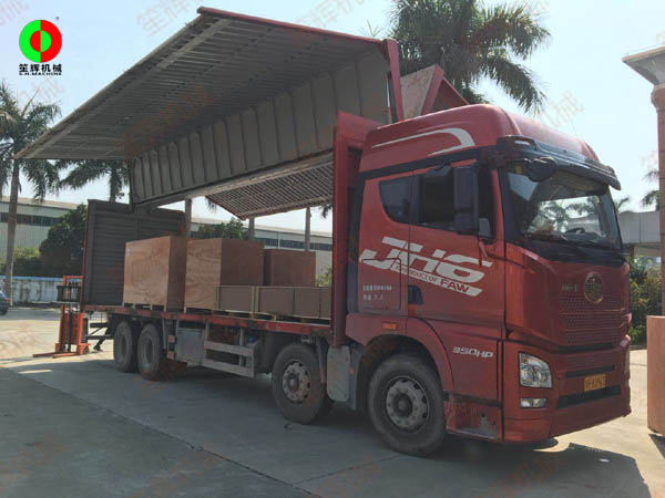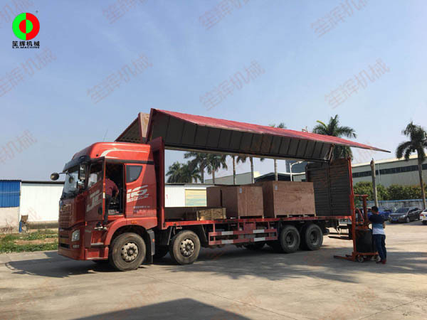 印尼經銷商定購的一批氣泡洗菜機和毛輥機配件裝車出貨!