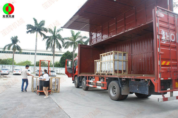 客戶訂購的一批蔬果清洗切割加工機械裝車出貨!
