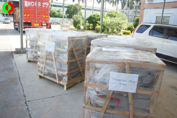客戶訂購的大批魚蝦采肉機已生產制造完畢,打包后成靜待裝車出貨!