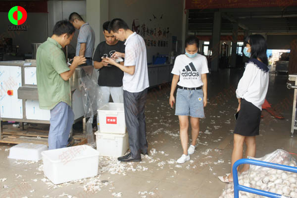 知名企業客戶考察公司現場,并測試大蒜加工生產設備!