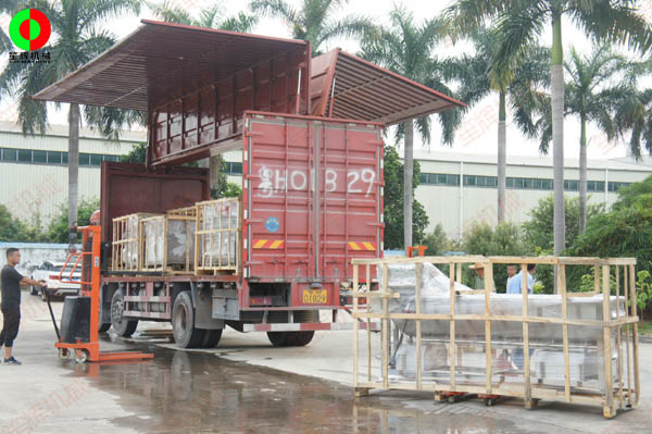 客戶訂購的一批各類蔬果加工機械,包括渦流洗菜機,切菜機,姜絲機,氣泡洗菜機,新款多功能洗菜機等等,按時裝車發貨交付客戶!