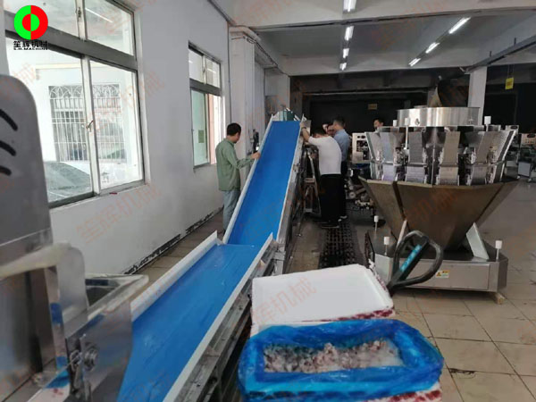 客戶一行幾人親臨我司現場考察,并帶來大批物料測試排骨的切丁和清洗、到清洗完畢后進行連續式脫水等的生產工藝流程!笙輝機械專注于肉類、水產、果蔬類等食品前處理加工機械的研發生產、制造,滿足客戶各類中*央廚房生產線非標工程定制實施!