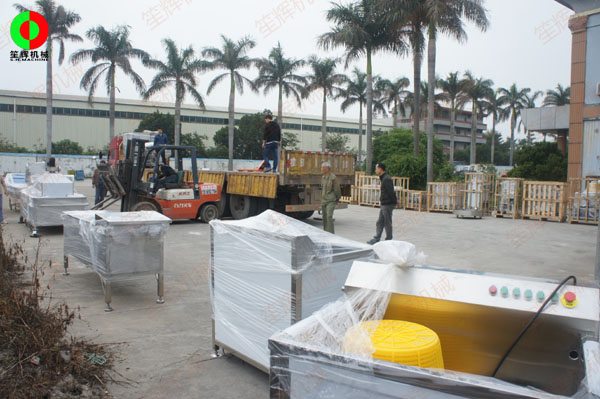 客戶日前定制的蔬果切割清洗生產線、脫水機設備、無損清洗生產線等等蔬果前處理加工設備等待裝車出貨!笙輝機械主要從事食品前處理加工機械的研發、生產和銷售,主要產品包括洗菜機,切菜機,切肉機,包裝機,削皮機,果蔬清洗機,真空包裝機等等 .......