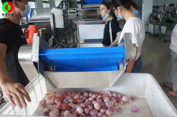 廣東惠州客戶王小姐親臨我司測試小洋蔥脫皮及打碎設備!我司洋蔥脫皮機運用壓縮空氣作為動力源,整個工作過程采用不用泡水,不用刀削,不磨損設計,通過氣流進行干式脫皮,確保洋蔥的完整度,適合蔬菜加工廠使用。