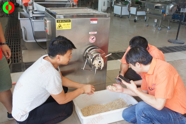 凍肉絞肉機(jī)嘗試處理牛筋,客戶滿意物料加工效果!