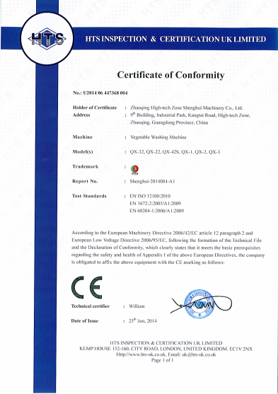 - 葉菜切菜機(jī)獲得CE認(rèn)證