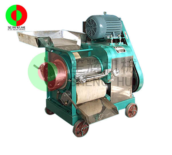 工作原理:人工把待加工的魚先去掉魚頭和取出魚肚中的內臟;對大魚,則需將魚剖分成兩半,漂洗干凈(避免采出來的魚漿被內臟及魚血污染)。隨后將魚片投入到料斗內(魚的剖分面朝向采取筒,背部貼近橡膠帶),魚在橡膠帶的帶動下進入采取筒與橡膠帶的擠壓區,在橡膠帶與采取筒之間的擠壓力的作用下,魚肉被擠壓通過采取筒上的小孔進入采取筒內,采取筒內的魚肉碎粒會隨著旋轉自動送出。而魚皮及魚刺等雜物則被裝在機器上的刮刀從采取筒外延上刮下落在收集槽中。整個采肉分離過程無需人手操作,衛*生。橡膠帶與采取筒之間的壓力大小,是由位于機器頭部的橡膠帶拉緊裝置調節。調節量的大小可根據魚種的大小靈活調整。提取出來的魚肉可作為魚丸、魚漿,魚醬,魚肉餅,魚餡餃等等食品原料,大大提高魚類經濟價值。