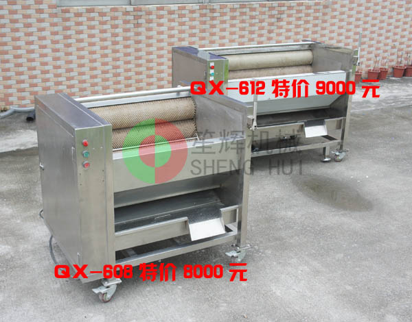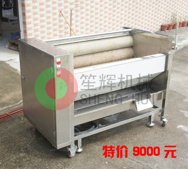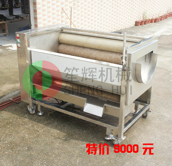 瓜果毛輥清洗脫皮機 主要由電機、變速器、毛棍組等構成,是我廠吸取了國內外對根薯類加工機械的特點設計制造的,采用毛刷摩擦原理,廣泛適用于圓形,橢圓形果蔬比如生姜、胡蘿卜、山芋、土豆、紅薯、等根薯類蔬菜的清洗、脫皮。瓜果毛輥清洗脫皮機具有外形美觀和操作方便,清洗脫皮容積大、效率高,耗能小,可連續清洗,操作簡單,使用壽命長等特點,清洗棍為經特工藝處理的尼龍線繩軋制材料,脫皮為加硬材料,兩者皆經久耐用,耐磨性能相當好。采用不銹鋼材質,旋轉出料,不銹蝕、清潔衛*生。