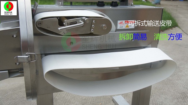 - 產品優勢: SH-120SD 型切肉機,采用的刀片,堅韌耐用;進料和出料均采用輸送帶動方式,皮帶拆卸和安裝都非常方便快捷,利于工作完成后對機器進行清潔保養;出料口采用平面皮帶輸送方式,物料切割完后可以整齊地輸送出來,能滿足下一步工序的操作。